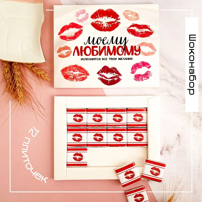 Подарочный набор для женщин и мужчин от Лаборатории счастья - это вкусные подарки, которые оставят неповторимые эмоции! Набор конфет "Любимому" станет отличным дополнением к основному подарку или приятным знаком внимания для любимого человека. Наши подарочные наборы продуктов помогут проявить заботу и сделать приятный сюрприз. Представляем праздничный бокс, внутри которого 12 плиток вкуснейшего бельгийского молочного шоколада с пожеланиями. Каждая шоколадка завернута в индивидуальный фантик под тематику набора. Вкусняшки в интересной упаковке с добрыми надписями - прекрасный повод собраться вместе с дорогими Вам людьми и отлично провести время за чашкой горячего чая. Необычный подарочный шоколадный набор как подарок девушке на день рождения, сюрприз для мужа или жены, парню на др, любимому человеку на 14 февраля, на годовщину или помолвку, поднимет настроение и точно станет памятным презентом. Все наборы сладостей сертифицированы! Подпишитесь на наш бренд нажав на сердечко! Мы делаем креативные подарки с любовью!